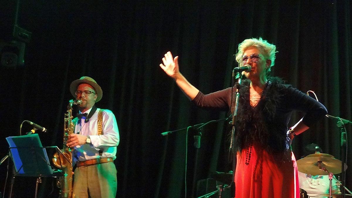 Как оказалось, такой фанатский антураж нынче не совсем соответствует действительности. Три вокалистки Pep-See, Аня, Маша и Инесса, действительно, практически всегда выходили на сцену в разноцветных париках. Но на этот раз обошлось не только без диско-париков, но и без Маши с Инессой. На сцене была только Аня Кипяткова в очках и красной юбке, в окружении пятерых музыкантов.