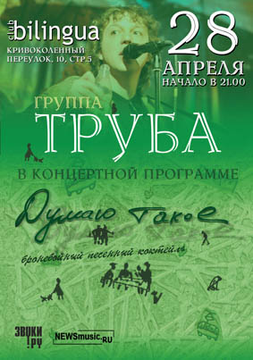 В ноябре на лейбле «Бомба-Питер» вышел новый альбом группы «Труба» под названием «Думаю такое» - бронебойный песенный коктейль, где на муздрайве замешаны поэтические загибы, словоблудные изыски, лирика без нюней, рашн и нерашн фолк.