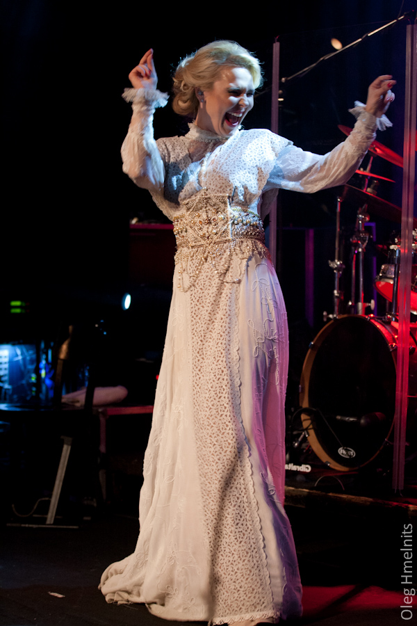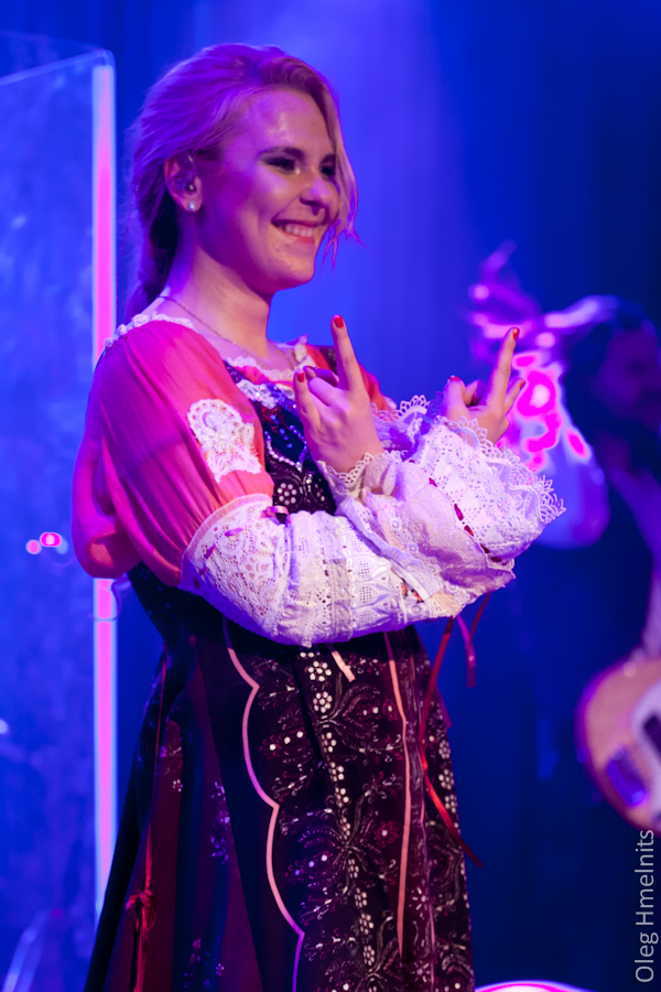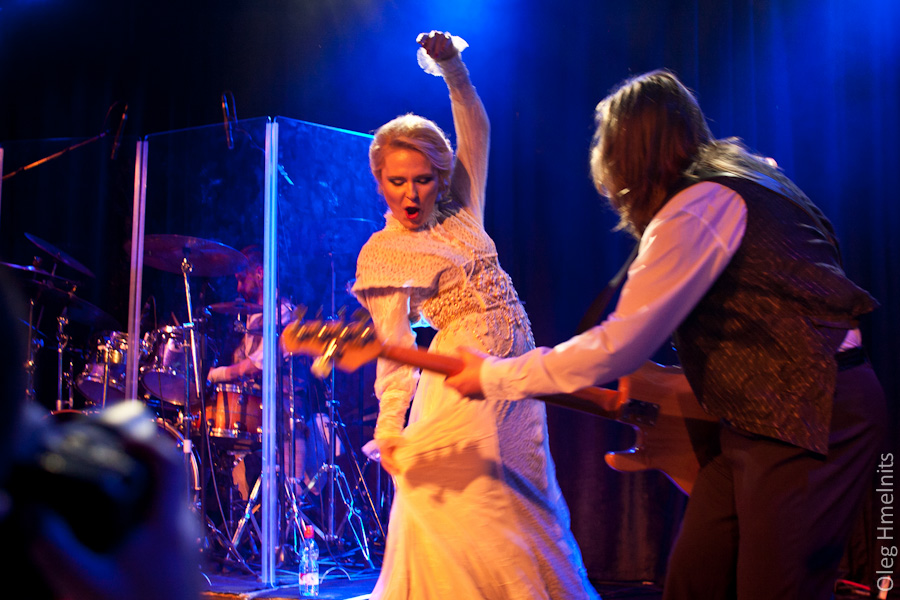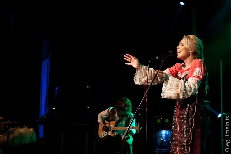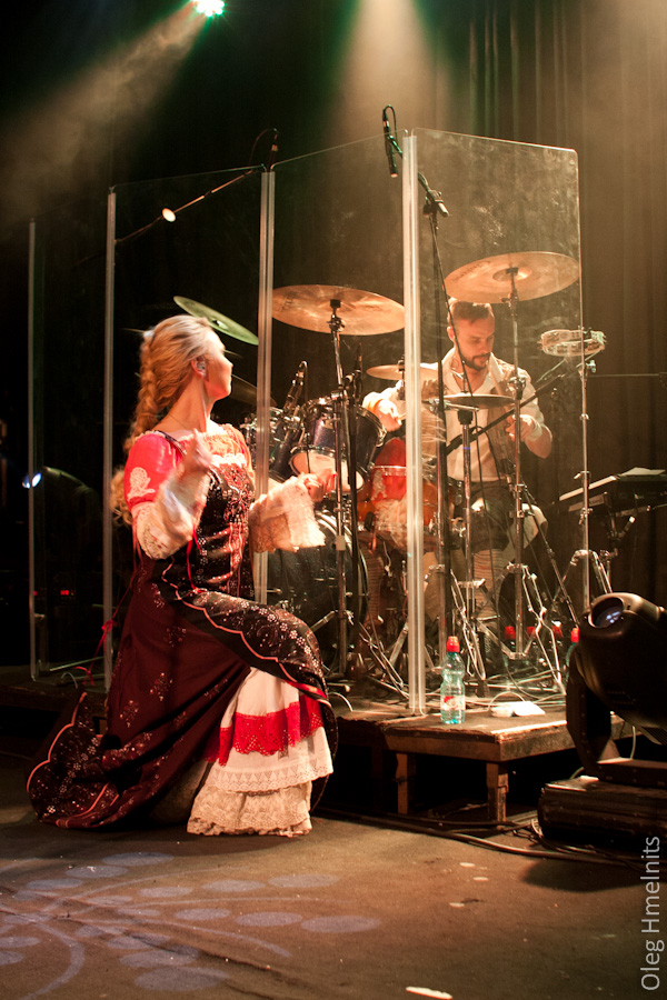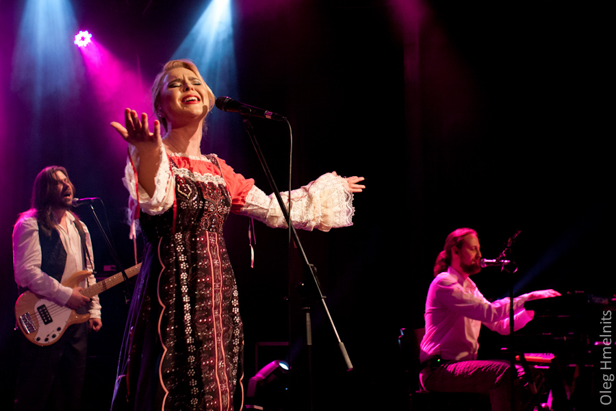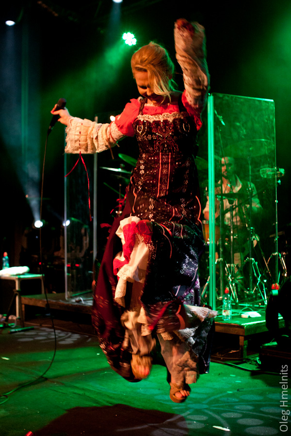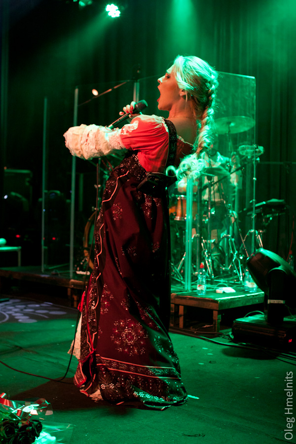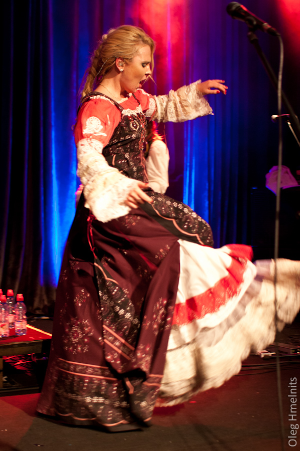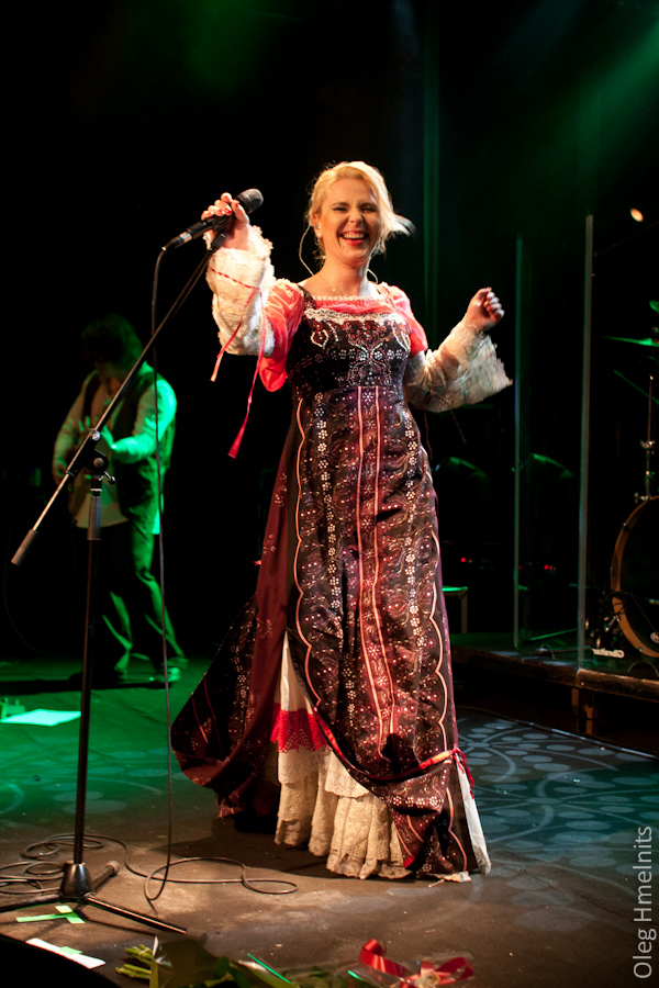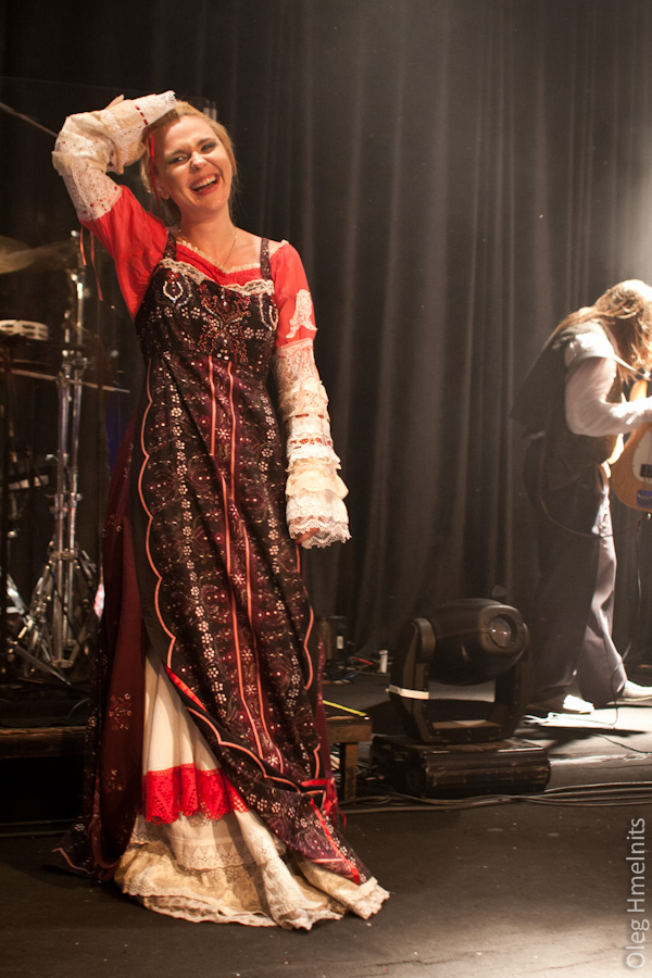 Во втором отделении певица сменила платье на лихой сарафан и, начав самой древней песней в репертуаре группы "Пташечкой", стала наращивать темп. "Когда мы были на войне", "Не для тебя" и "Ракита", исполненная под аккомпанемент одного лишь гитариста Павла Дешуры - все остальные музыканты пели...