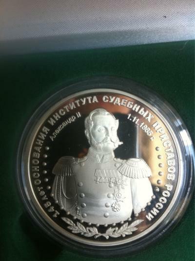 Медаль из чистого серебра с портретом Александра II, выпущенную специально к 145-летию института судебных приставов в России