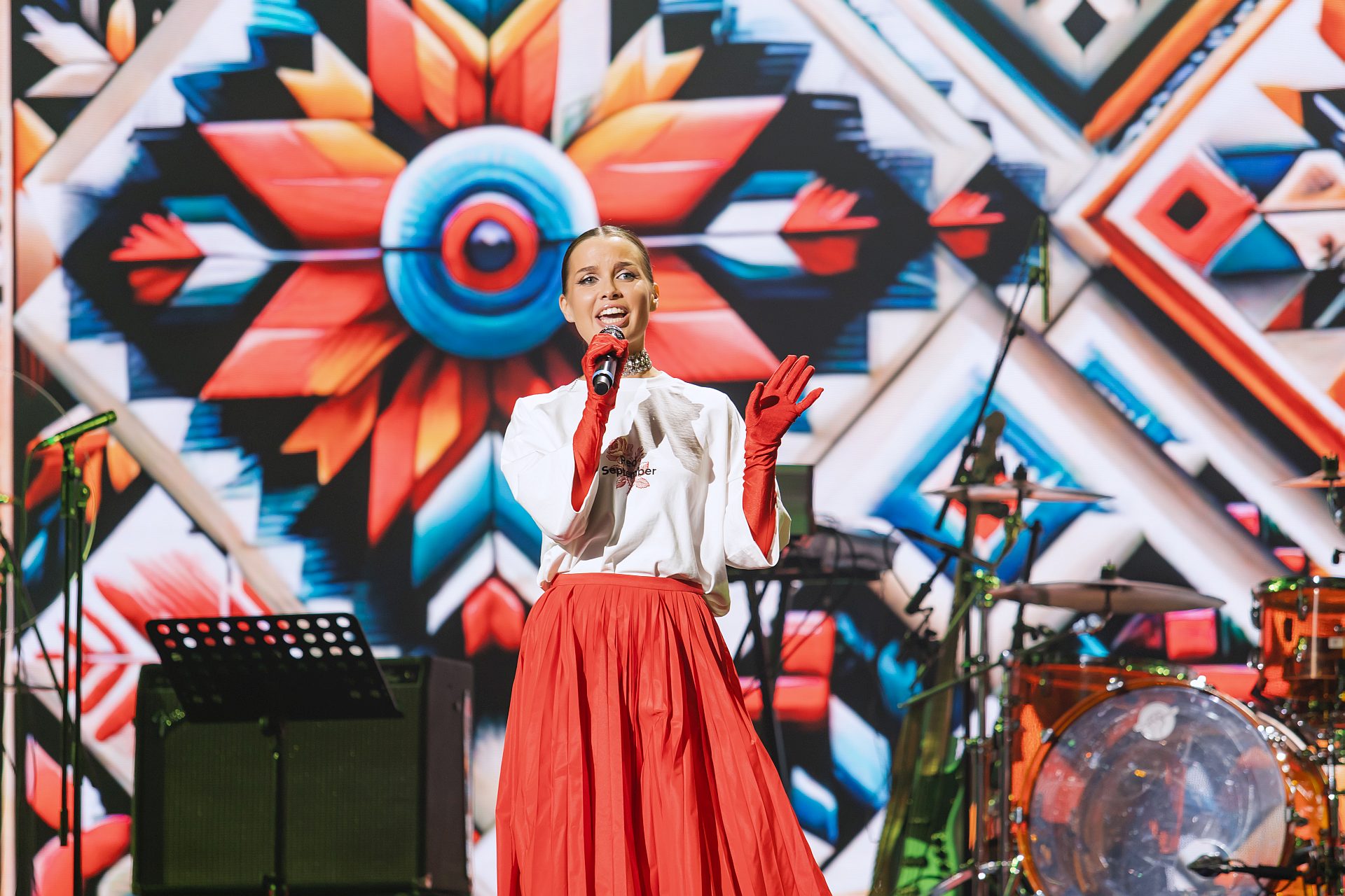 «Видный парень, удалой - богатырь Алёшенька для меня всё песни про любовь поёт. А девчонки все вокруг ему улыбаются - каждая в душе мечтает: с ним пойдёт», - поет Куртукова.