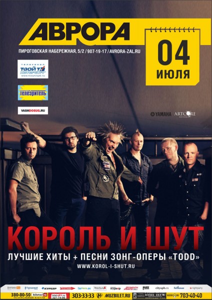 Концерт группы «Король и Шут»: 4 июля, 19:00, Санкт-Петербург, «Аврора»