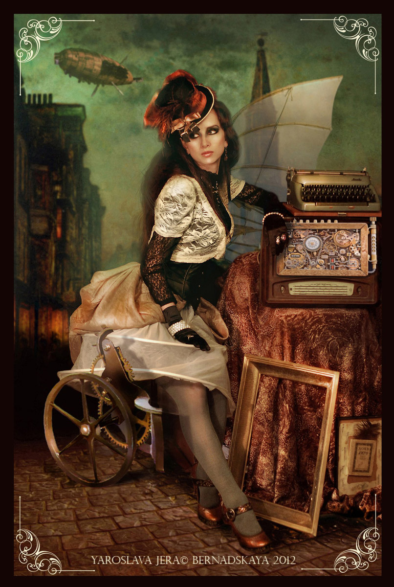 Фотосессия в стиле стимпанк приурочена к только что записанному альбому группы «Татуированная роза», куда вошли такие композиции, как «Безумный художник», «Девушка, читающая Фаулза», «Нарисованный мир». Кстати, в записи последней принял участие легендарный отечественный флейтист Олег Сакмаров («Аквариум», «Наутилус Помпилиус», «Ю-Питер»).