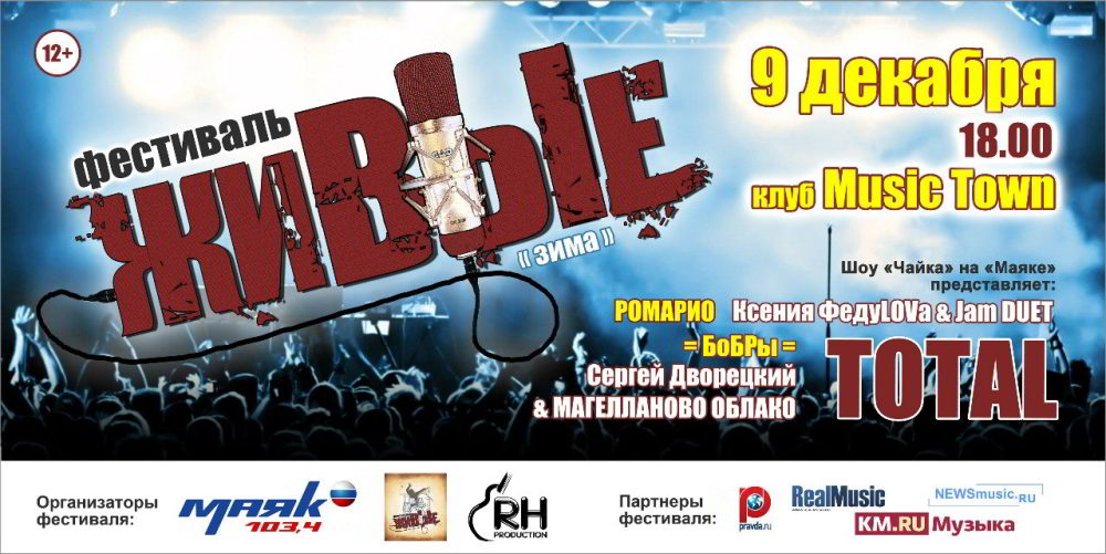 Теперь у жителей столицы есть возможность не только услышать, но и увидеть сразу 5 талантливых музыкальных команд на одной сцене. Фестиваль "Живые" - это исключительно хорошая, искренняя музыка, не имеющая форматов и рамок. В теплой дружеской атмосфере во главе с ведущим вечера - Семеном Чайкой, зрителей ждет качественный живой звук и хорошее настроение. Отдых на выходные обеспечен.
