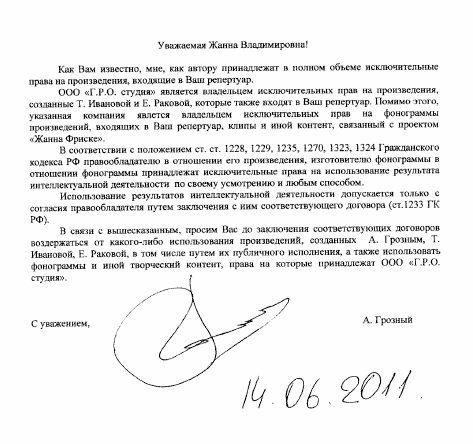 - Я удивлен поведением Жанны. – комментирует Андрей Грозный – Сначала она сообщает мне о том, что улетает на съемки новой программы, которые будут проходить до конца лета, поэтому все концерты с ее участием, запланированные на этот срок, отменены. Отмена выступлений доставила нам немало хлопот, билеты были проданы, мероприятия назначены. А теперь она снова захотела петь. По крайней мере, это непоследовательно и странно. Независимо от того, как в будущем сложатся деловые отношения между нами, GRO studio продолжает работу над новым проектом с участием Кати Баженовой. Молодая певица перепела все песни Жанны, и сейчас мы записываем новые. Кроме того, в данный момент идет подготовка к съемкам нашего первого клипа.