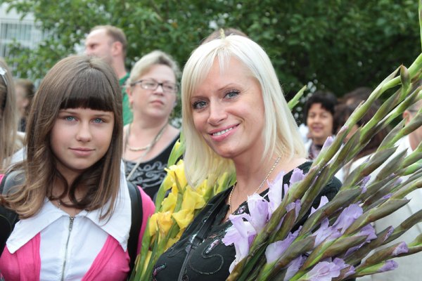 В этот день певица прекрасно выглядела с новой прической – Наталия постриглась и сменила цвет волос на более светлый. Кстати, сделать именно такую прическу Наташе посоветовала дочка. Вместе с Яной певица выбрала для классной руководительницы и директора школы букеты ярких гладиолусов.