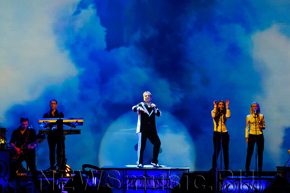 Певцу аккомпанировал ансамбль из ритм-секции, клавишных, перкашн, гитариста и двух бэк-вокалисток. Концерт прошел полностью живым звуком.
