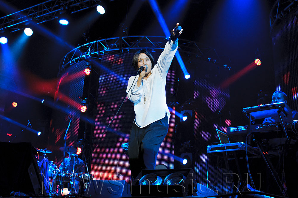 «На вас я проверяю свою музыку», - объяснила зрителям певица. Проверка явно не задалась. Эффектнее всего выглядел «Новый шёлковый путь» на слова Бориса Гребенщикова, но исключительно за счет восточного колорита вокализов и диковинного для российской поп-музыки танбура на сцене.