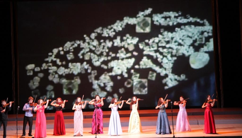 Оркестровую палитру праздничного концерта составили выступление лауреатов международных фестивалей-конкурсов Международного детского фонда «Дети Саха – Азия», стипендиата Национального фонда «Бар5арыы» Ансамбля скрипачей «Виртуозы Якутии», с блеском исполнивших одну из частей «Времён года» А. Вивальди, и – конечно, Объединённый симфонический оркестр республики под управлением Н. Пикутского – главного дирижёра Государственного театра оперы и балета республики Саха (Якутия) им. Д. К. Сивцева-Суорун Омоллоона.